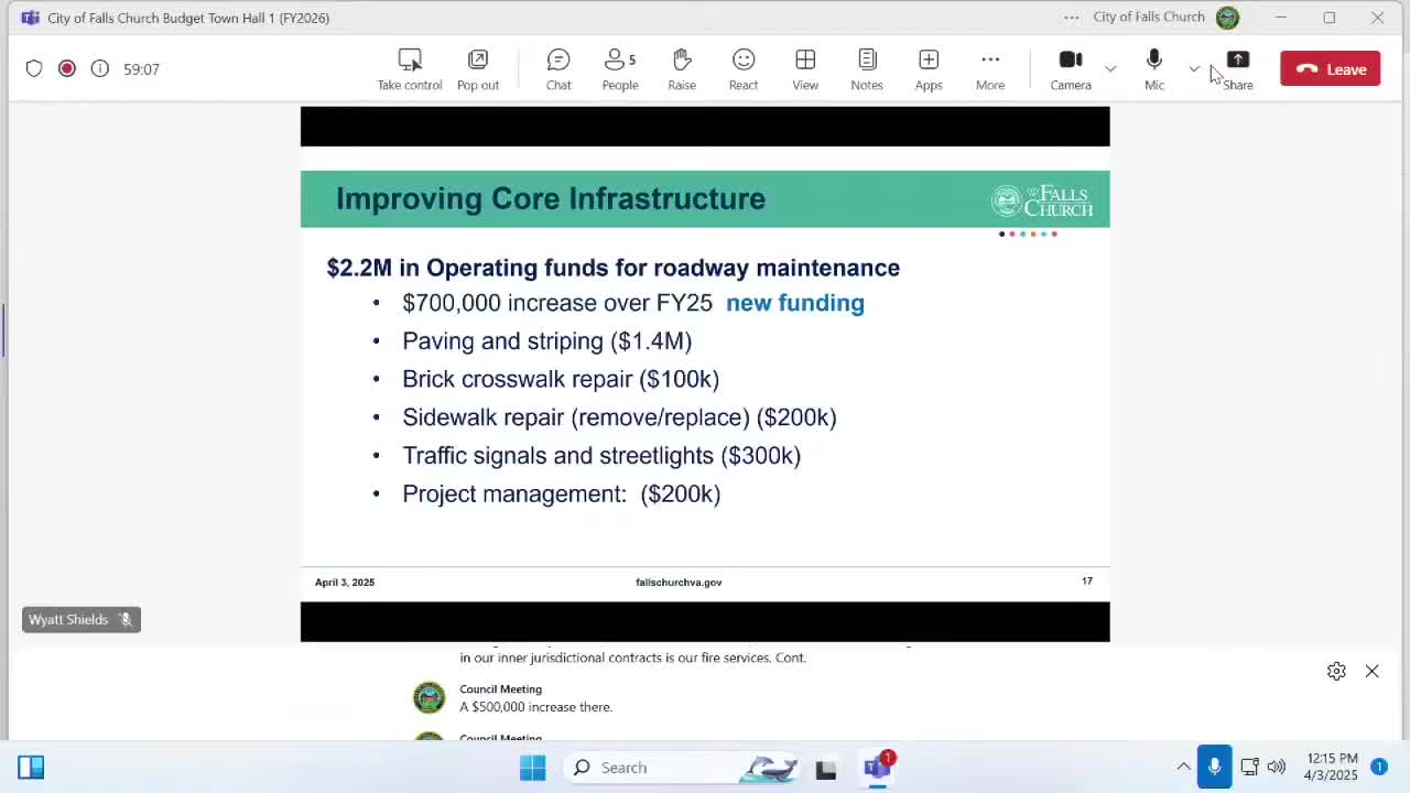 Falls Church manager proposes 2.5-cent real estate tax cut in $134 million FY2026 budget with $500,000 contingency