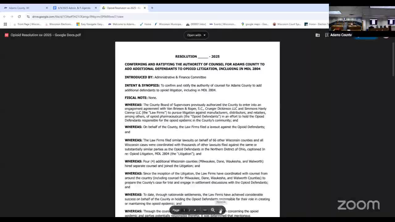 Board approves resolutions sending opioid authority and administrator contract to full county board