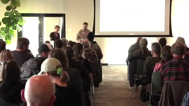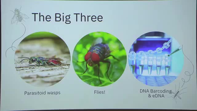 Speaker describes parasitoid wasps' life cycle and virus partnership