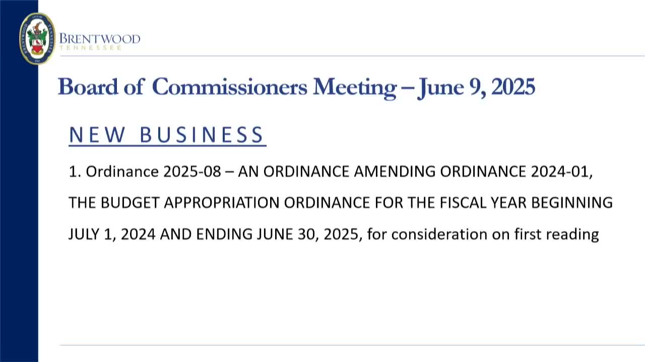 Brentwood amends 2024-25 budget ordinance; city manager outlines transfers and revenue increases