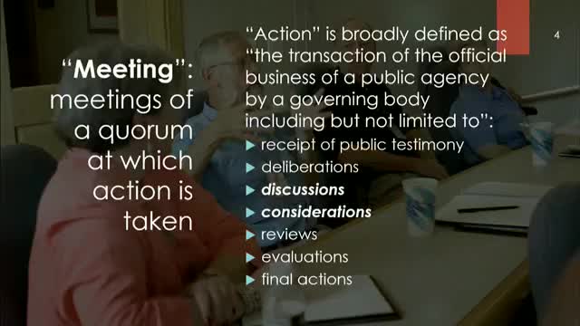 Trainer reiterates Open Public Meetings Act rules, warns against email/text serial meetings and improper executive-session decisions