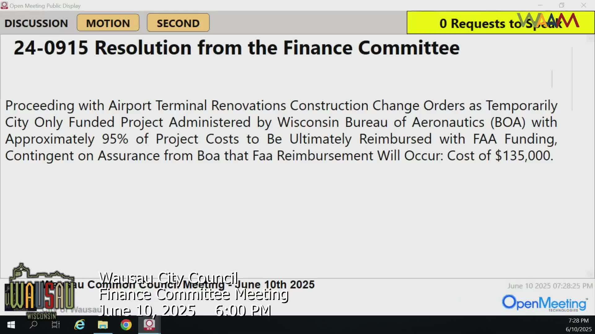 Council authorizes temporary city funding for airport terminal change orders pending FAA reimbursement
