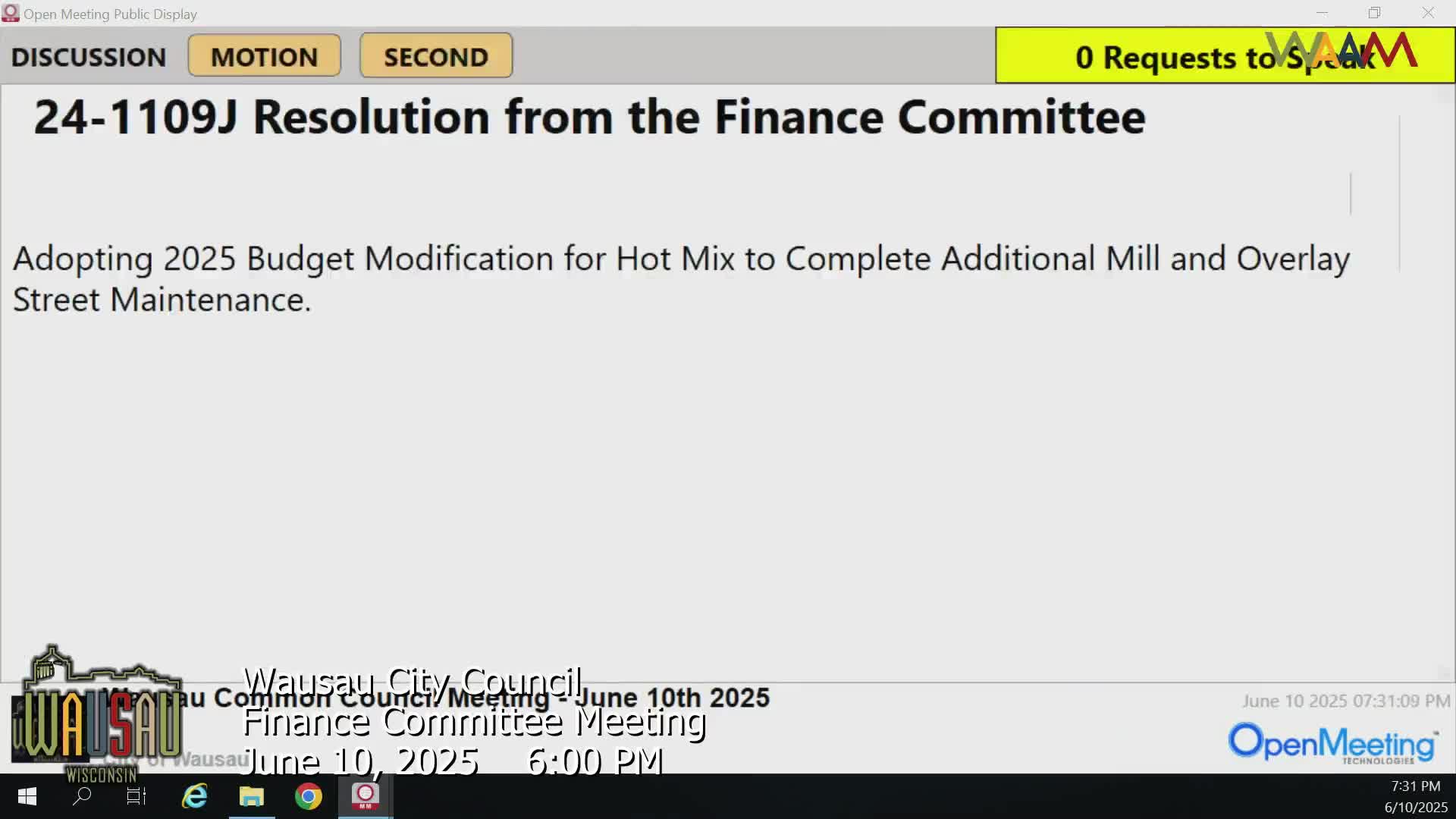 Council adopts $250,000 budget amendment to add hot‑mix overlay work; staff to return with proposed street list