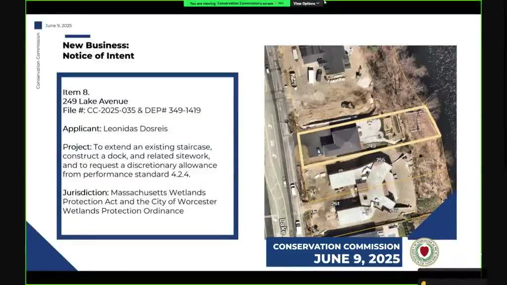 Homeowner seeks seasonal dock and extended stairs; commission approves with conditions and Chapter 91 noted