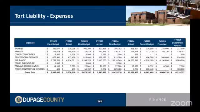 DuPage County finance department outlines 2026 budget, flags postage refund, tort liability and headcount questions