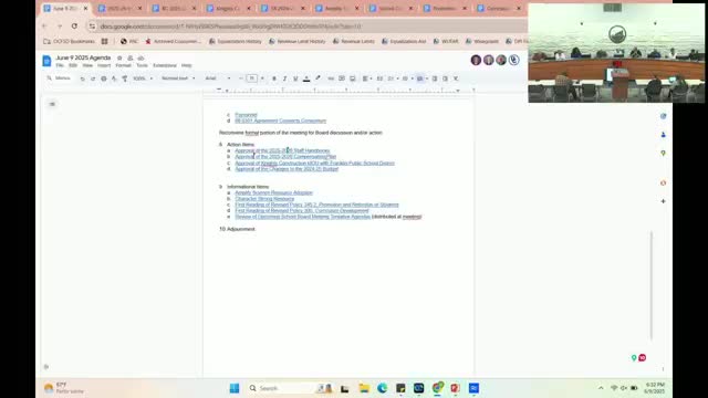 Board approves 2025–26 staff handbook after debate over personal cell‑phone use and emergency procedures