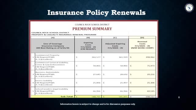 Council Rock finance committee reviews proposed final budget with 2.93% tax increase and multi‑year projections