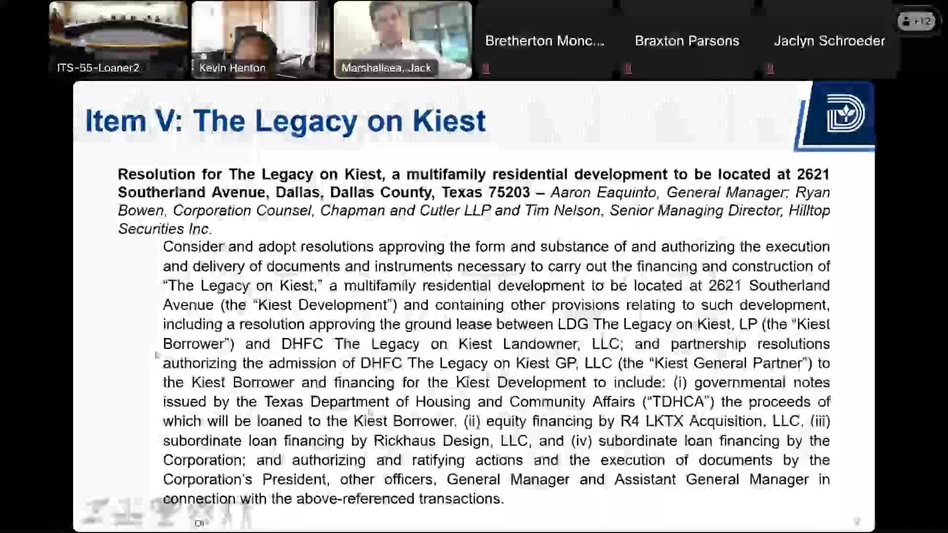 Dallas Housing Finance Corporation approves four financing resolutions and a bond-allocation resolution