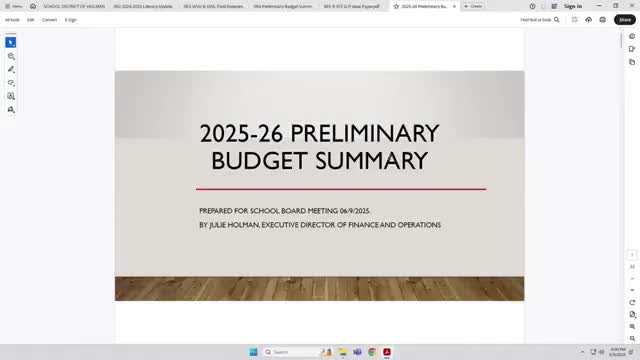 Holmen finance director presents cautious 2025–26 preliminary budget with $912,000 planned deficit