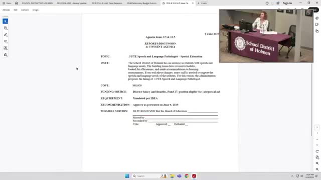 Holmen seeks 0.5 FTE speech‑language pathologist to reduce heavy caseloads