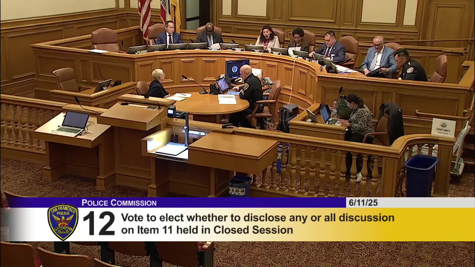 Police Commission elects new officers, approves consent items and votes to hold closed session