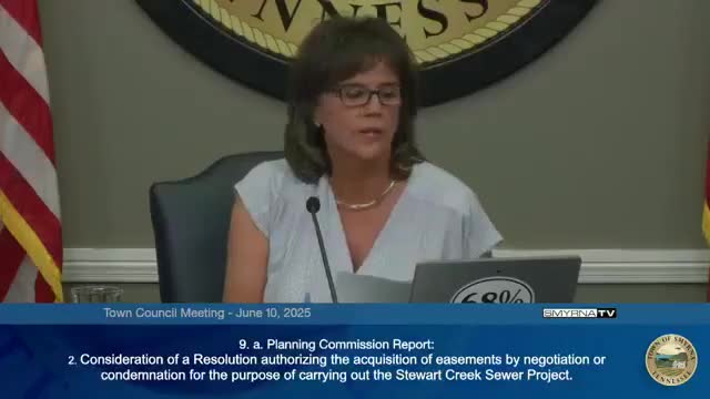 Smyrna council approves easement resolution for Stewart Creek sewer project; staff warns timetable is tight