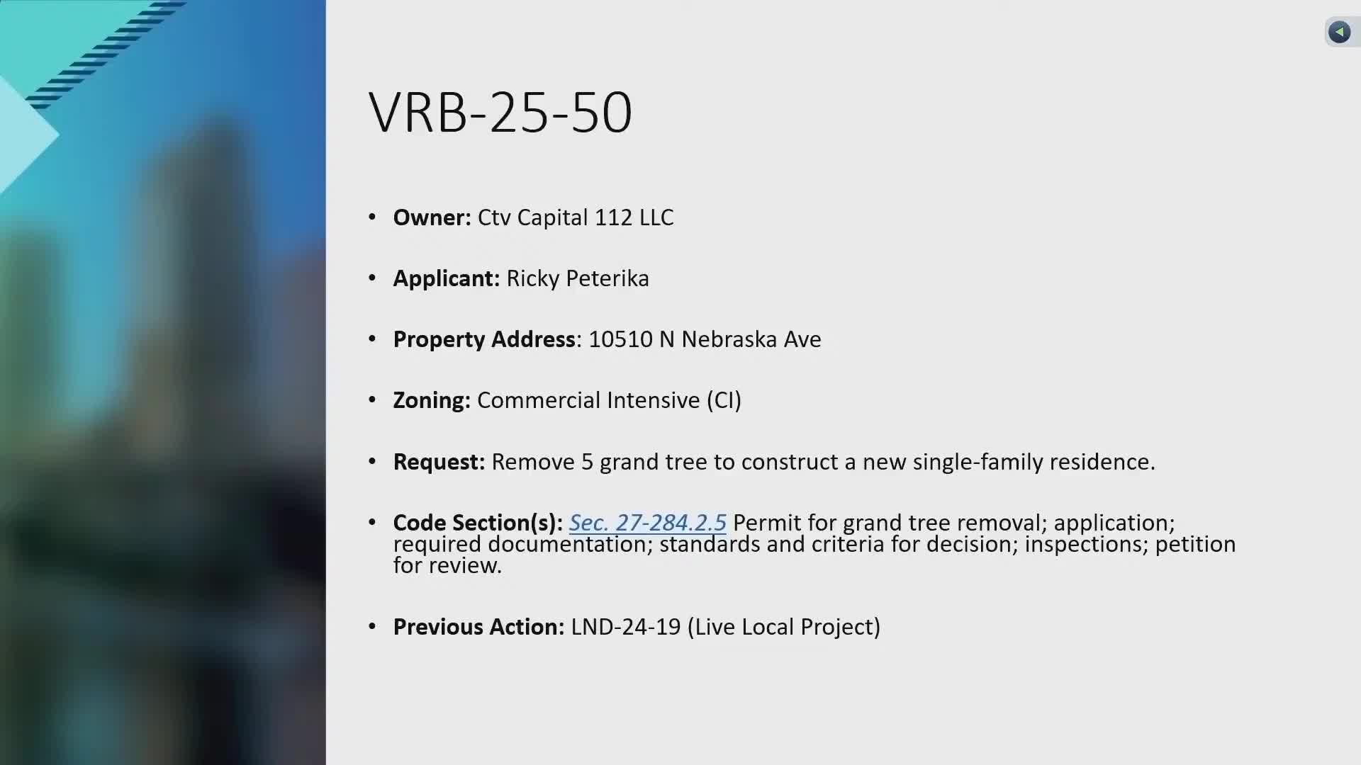 Tampa VRB approves rear-setback reduction to allow two‑story accessory unit above detached garage