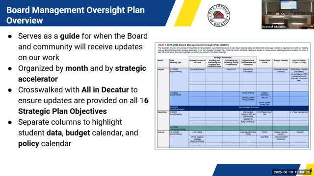Board discusses board‑management oversight plan and whether to move public comment earlier in agenda; survey to be drafted