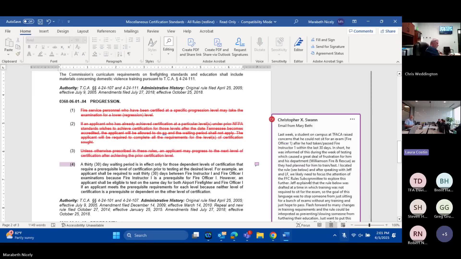 Committee reopens waiting-period rules for certifications; 30‑day retest and instructor three‑year rules questioned