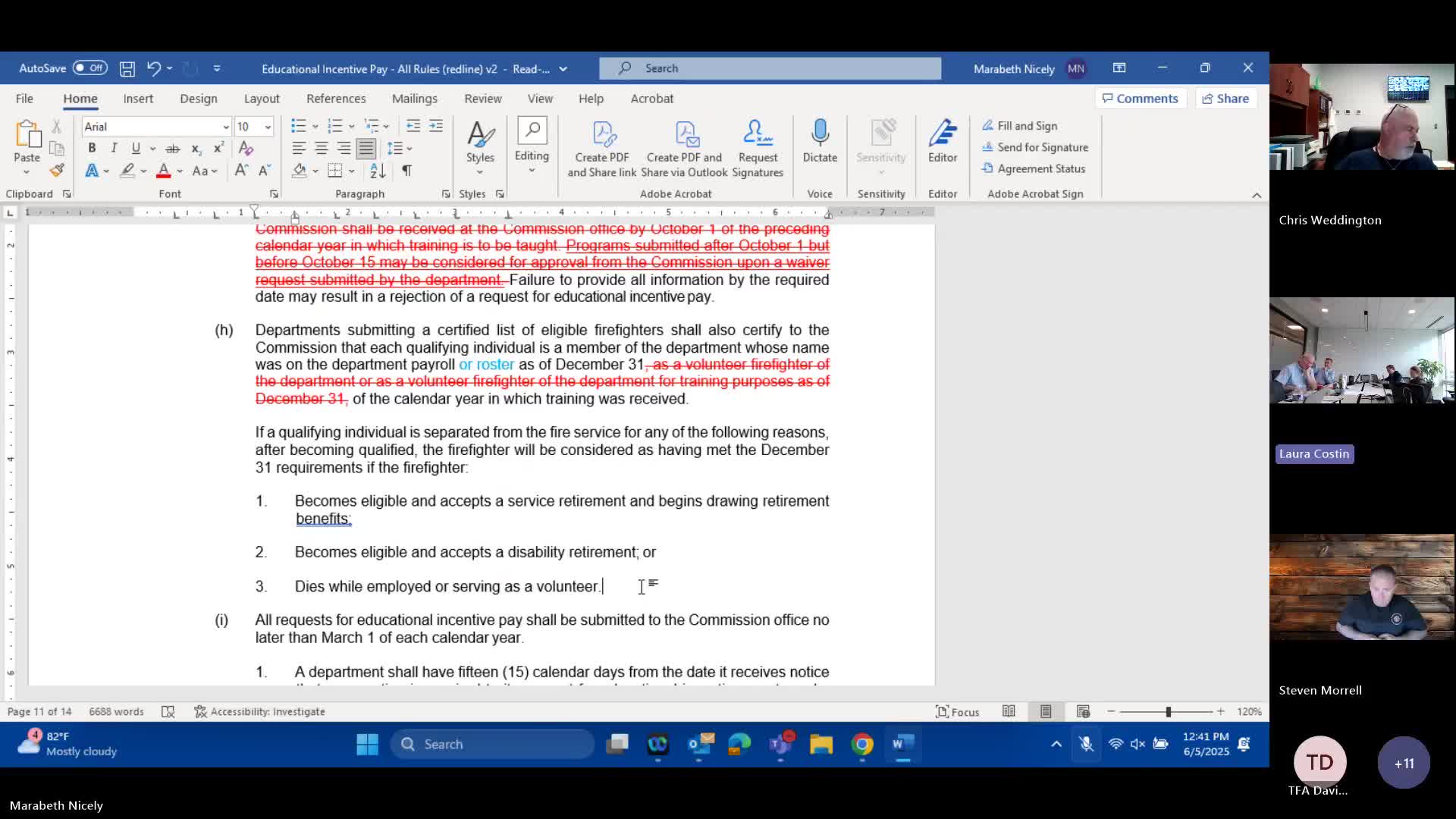 Subcommittee debates who counts as "eligible" for firefighter education incentive pay, including payouts after death