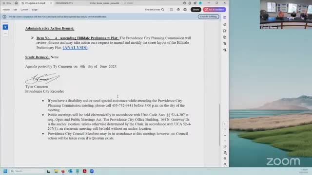 Planning commission approves Hilldale preliminary‑plat street modification to improve connectivity