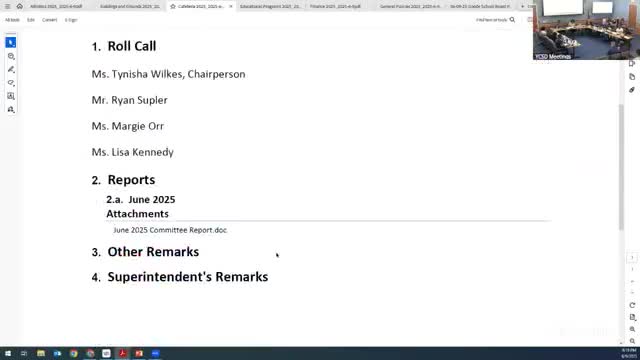 Food-service director reports inventory, summer meal sites and more than 1 million meals served year-to-date