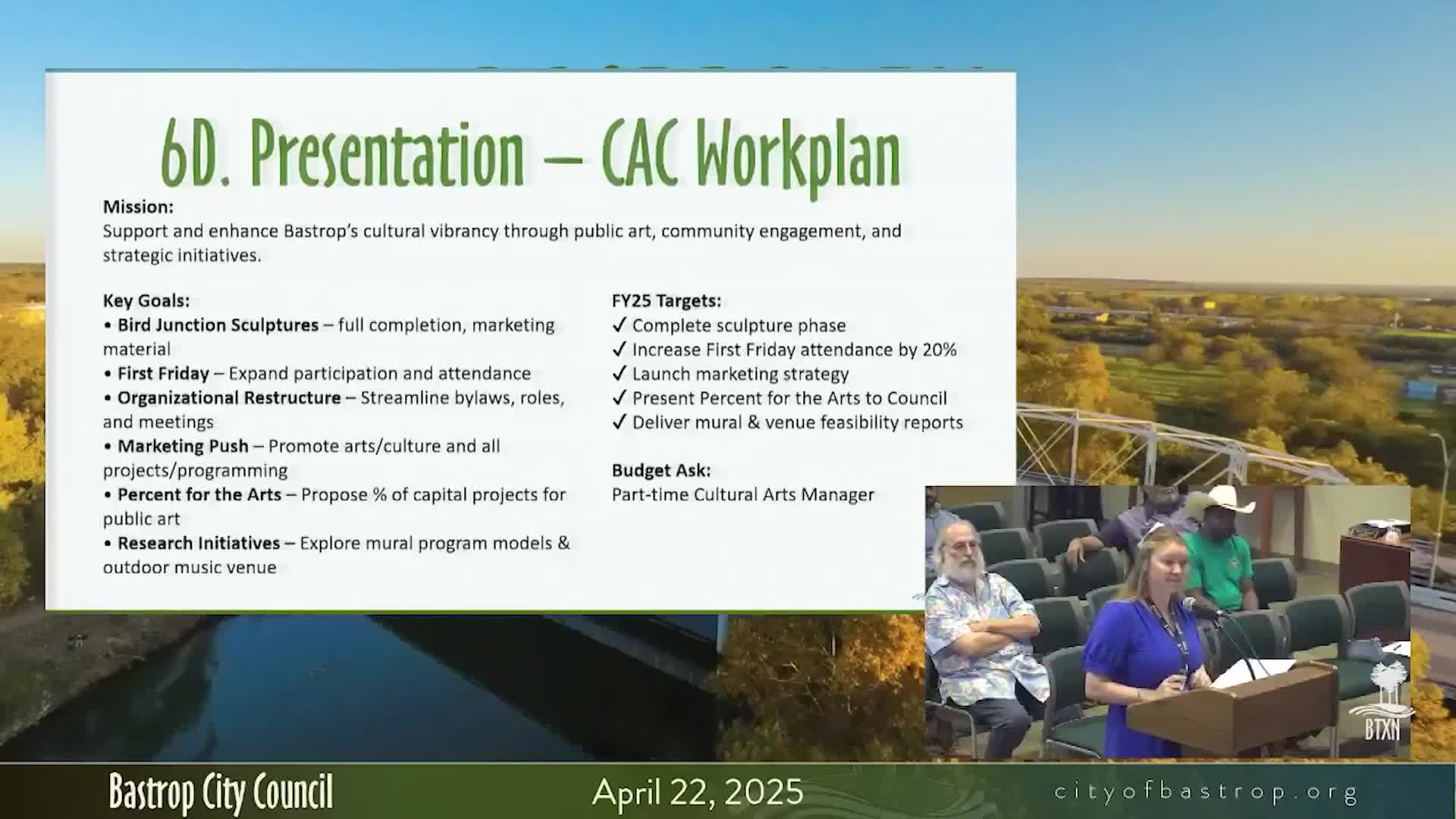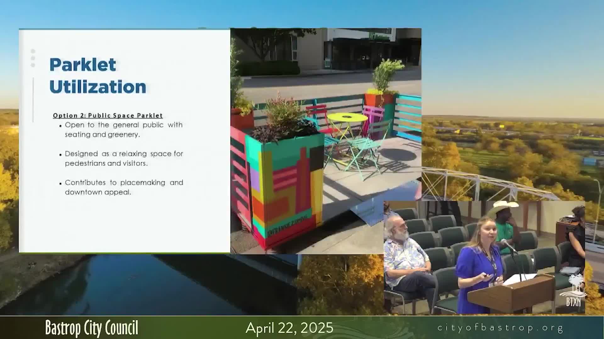 Main Street manager proposes parklet pilot and —percent-for-arts— program; council asks for feasibility and staffing plan