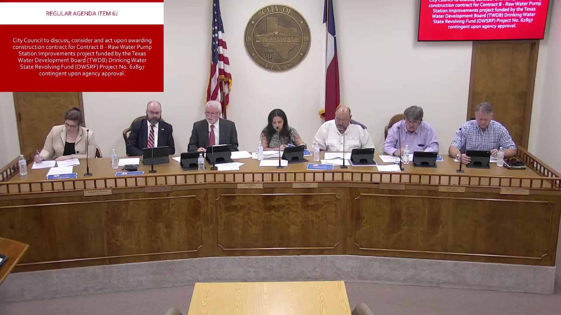 Council awards contract for raw‑water pump‑station upgrades, contingent on TWDB approval