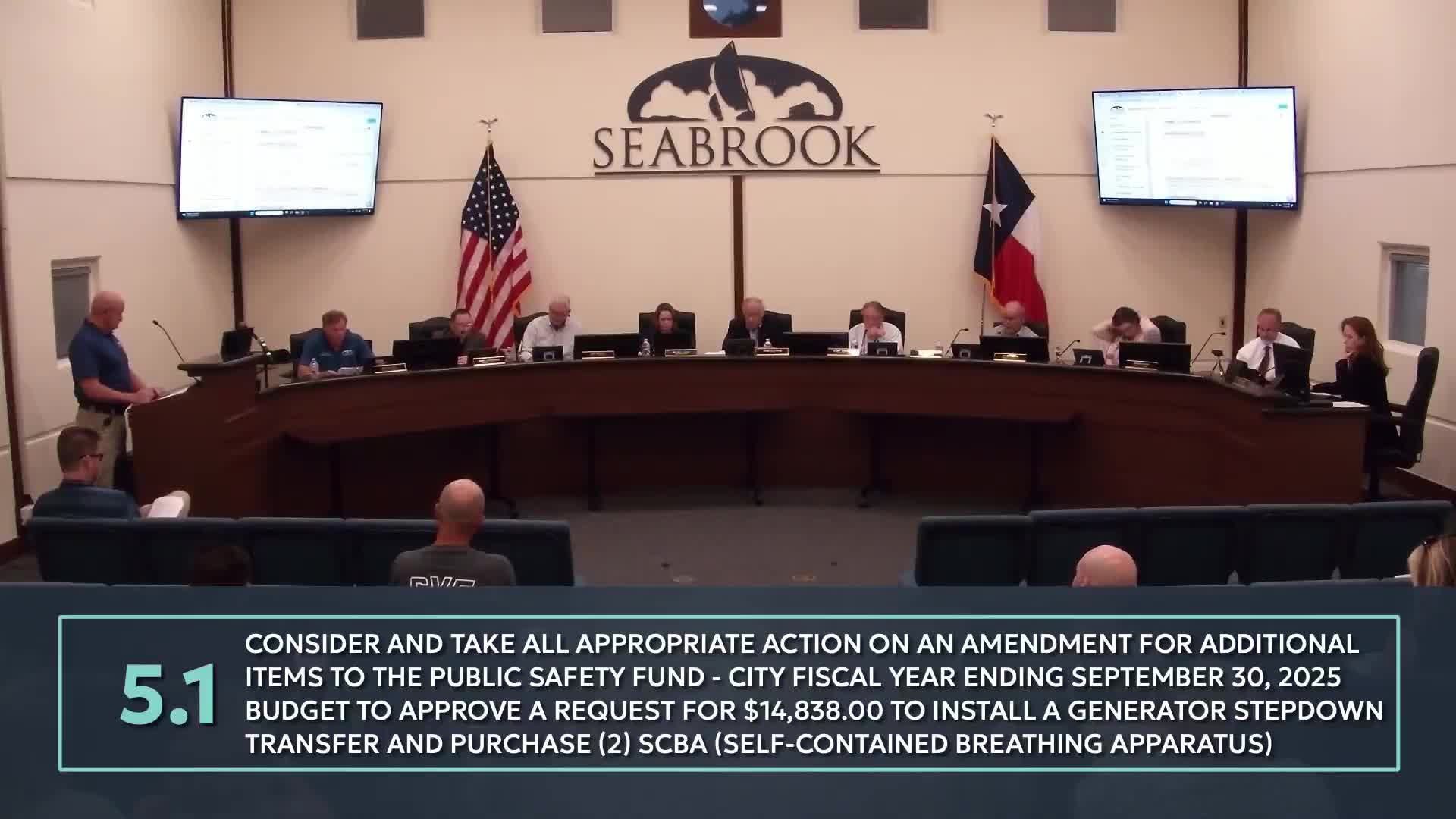 Council approves public safety fund purchases and budget amendments for generators, SCBA equipment