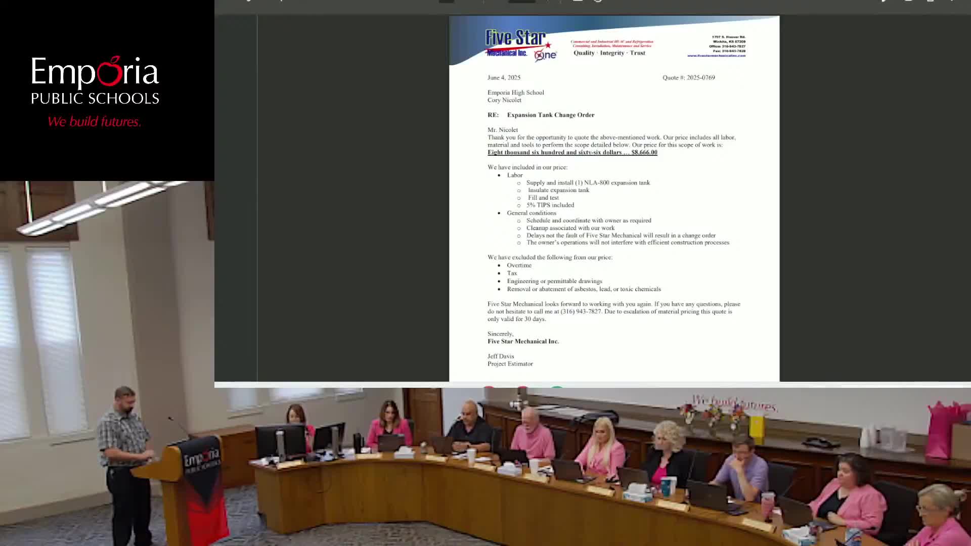 Board approves EHS boiler project changes: storefront door and new expansion tank added