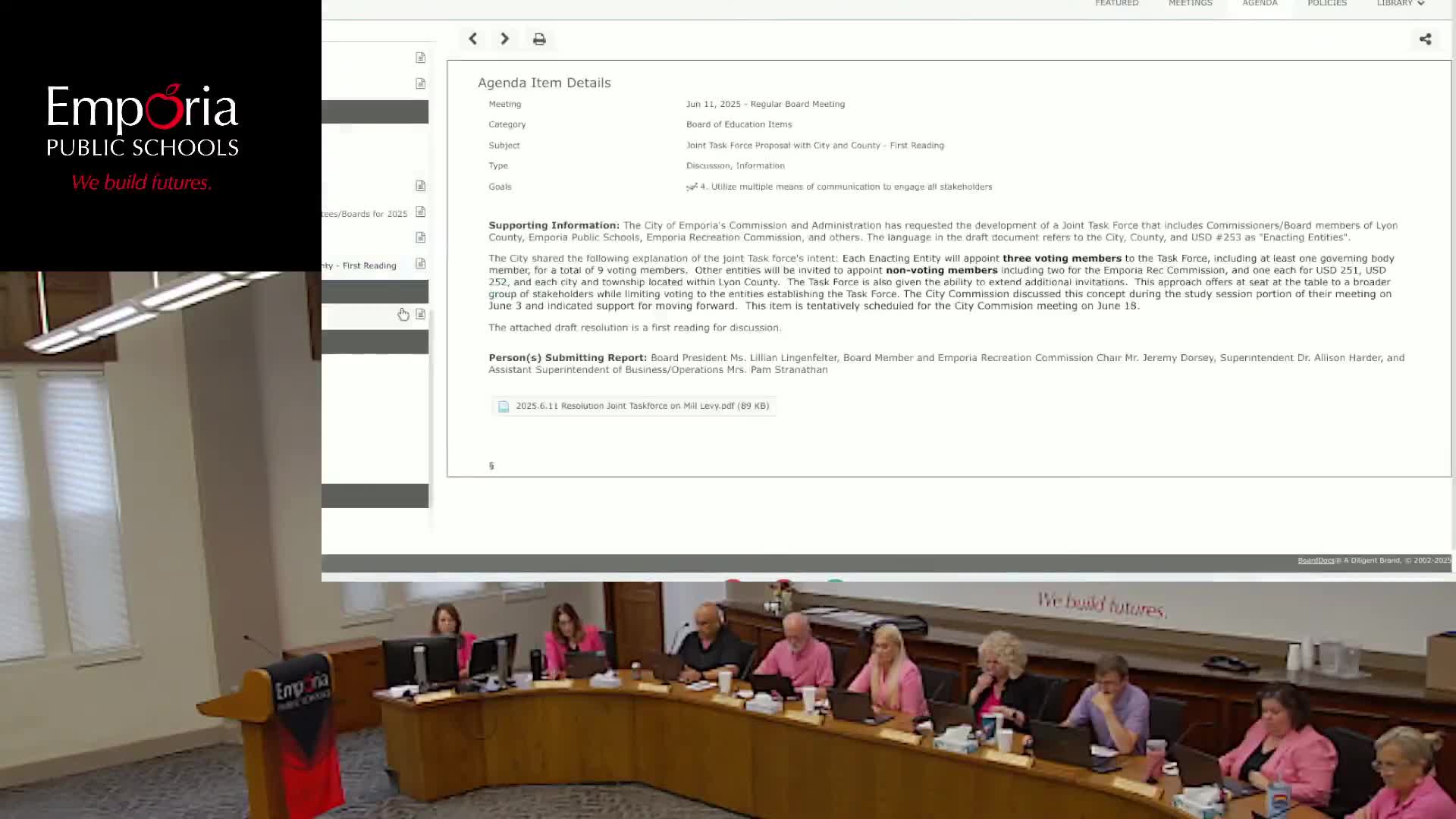 Board reviews joint task force proposal on mill levies; trustees raise procedural and equity concerns