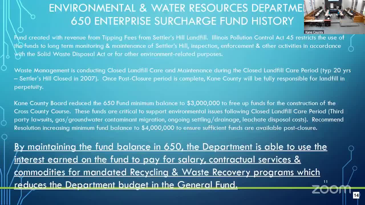 Kane County environmental staff outline 2026 budget priorities and plan to meet 10% general-fund cut
