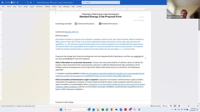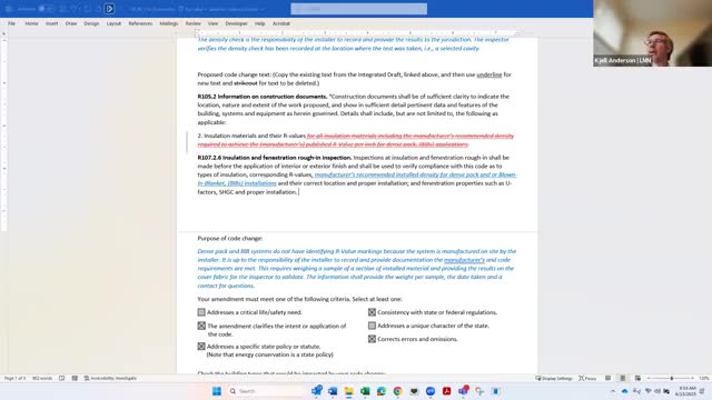 Tag tables proposal to require on‑site density testing for blown‑in blanket insulation; proponents to redraft language