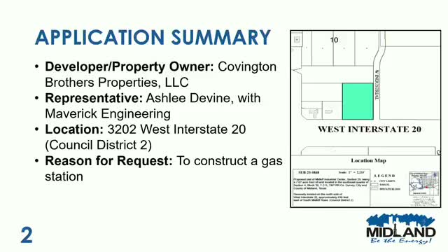 Commission approves preliminary plat for Midkiff Industrial Center parcel, proposed gas station noted as in "special study area"