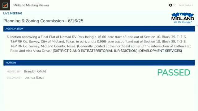 Planning commission approves final plat for Nomad RV Park after acreage and utilities queries