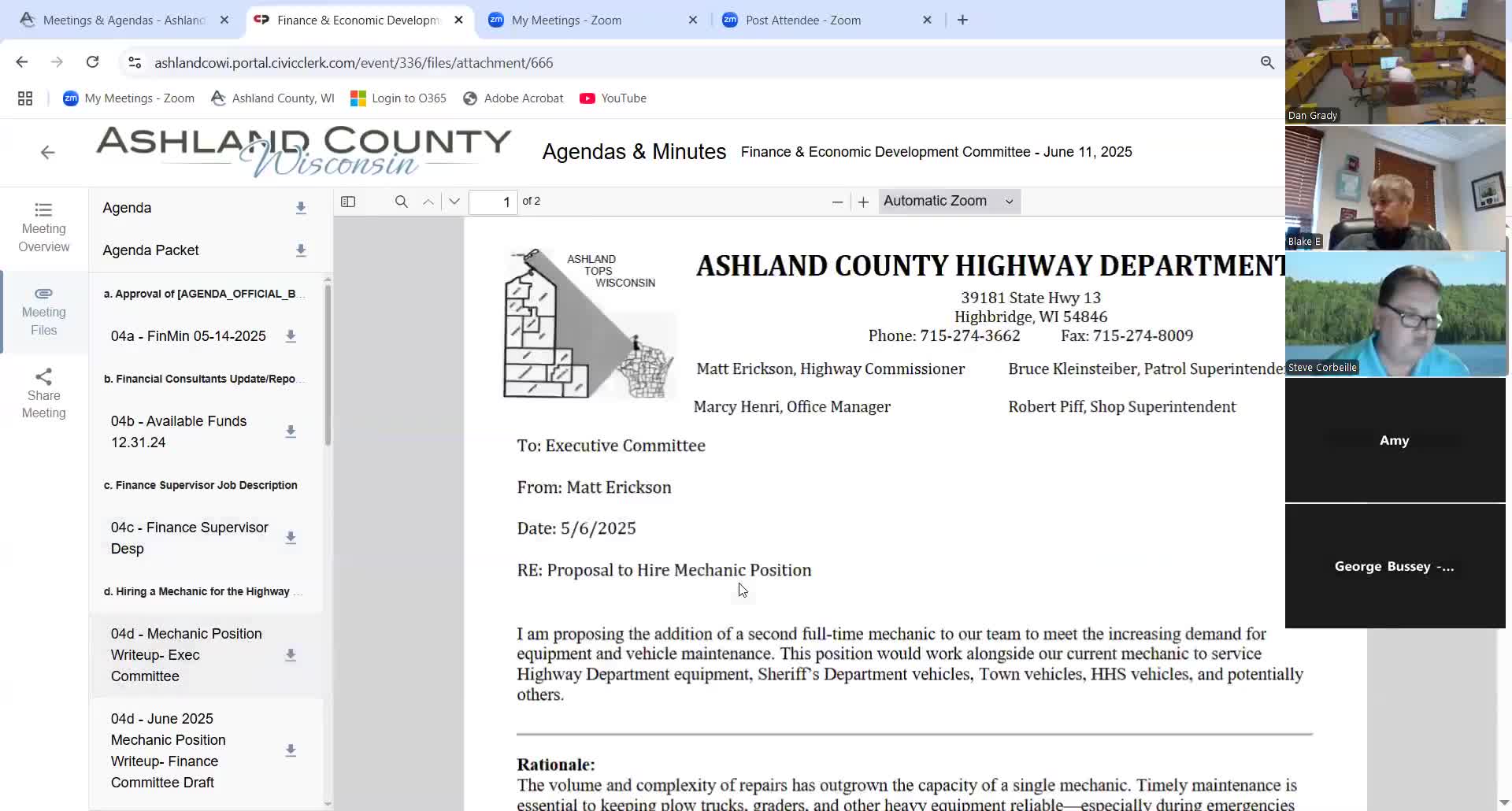 County committee approves hiring mechanic; highway staff may build plow trucks in‑house to save labor costs
