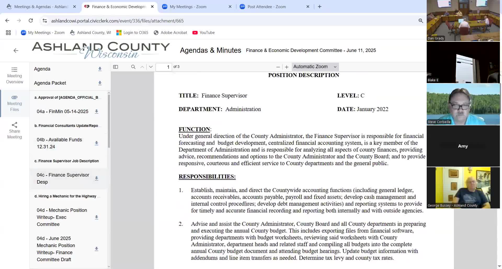 Committee approves posting for finance‑supervisor role; salary range set at $70,000–$90,000 plus benefits