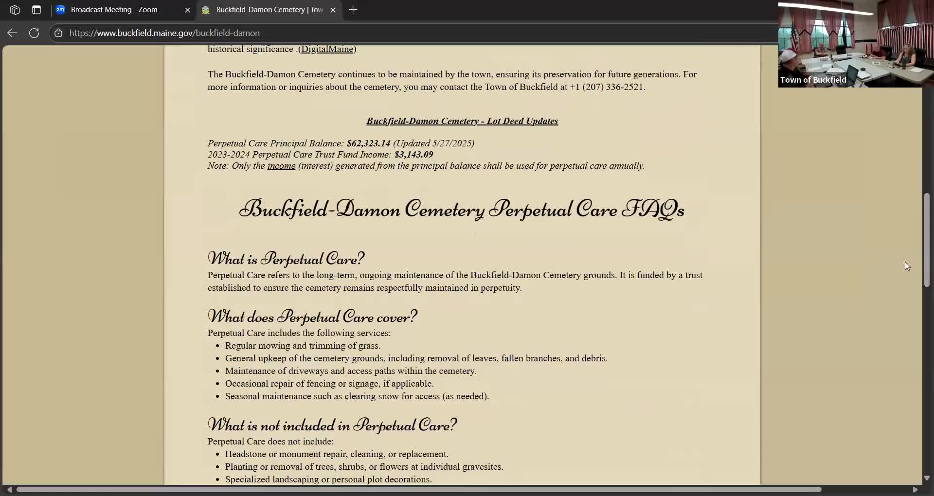 Buckfield clarifies 'perpetual care' limits for Damon Cemetery, warns volunteers or budget increase needed
