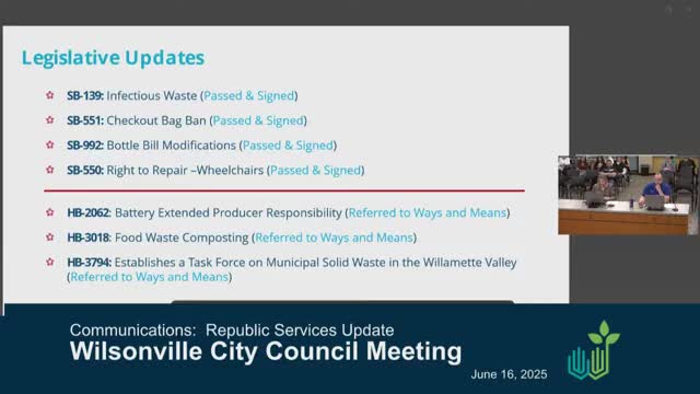 Wilsonville hears rollout plan for Recycling Modernization Act, timeline for next year’s solid-waste rate review