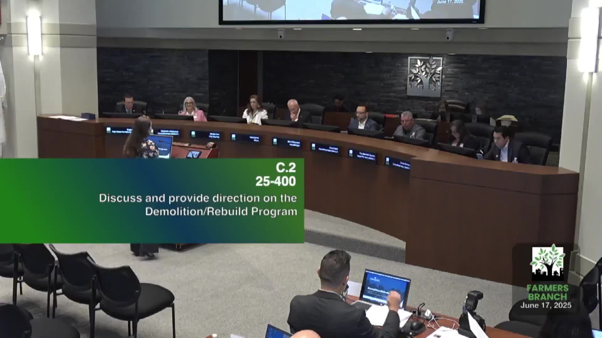 Farmers Branch council narrows preference for demo‑rebuild incentives; staff to return with builder input