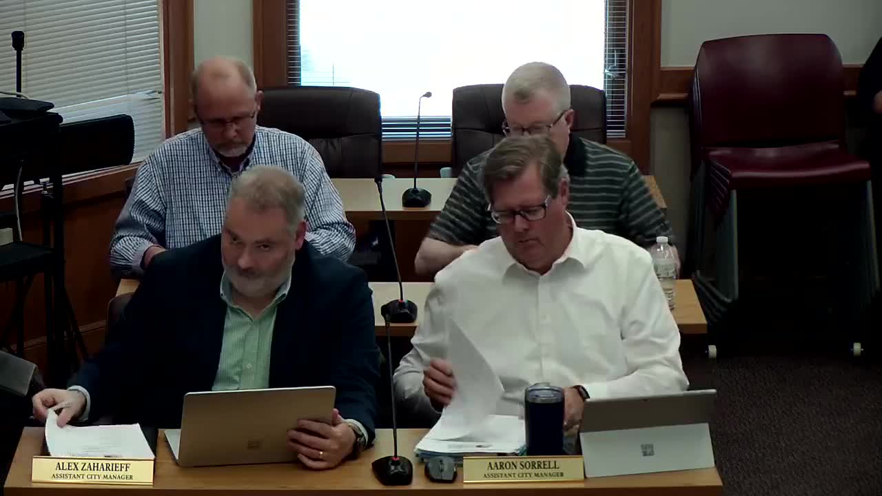 Council briefed on multiple administrative items: CIP addition, property transfers, TIF plan, FF&E award, land purchase status, board appointments and a liquor‑
