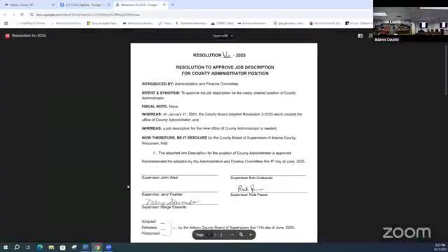 Adams County board amends administrator job description to require quarterly reports; employment contract returned to committee