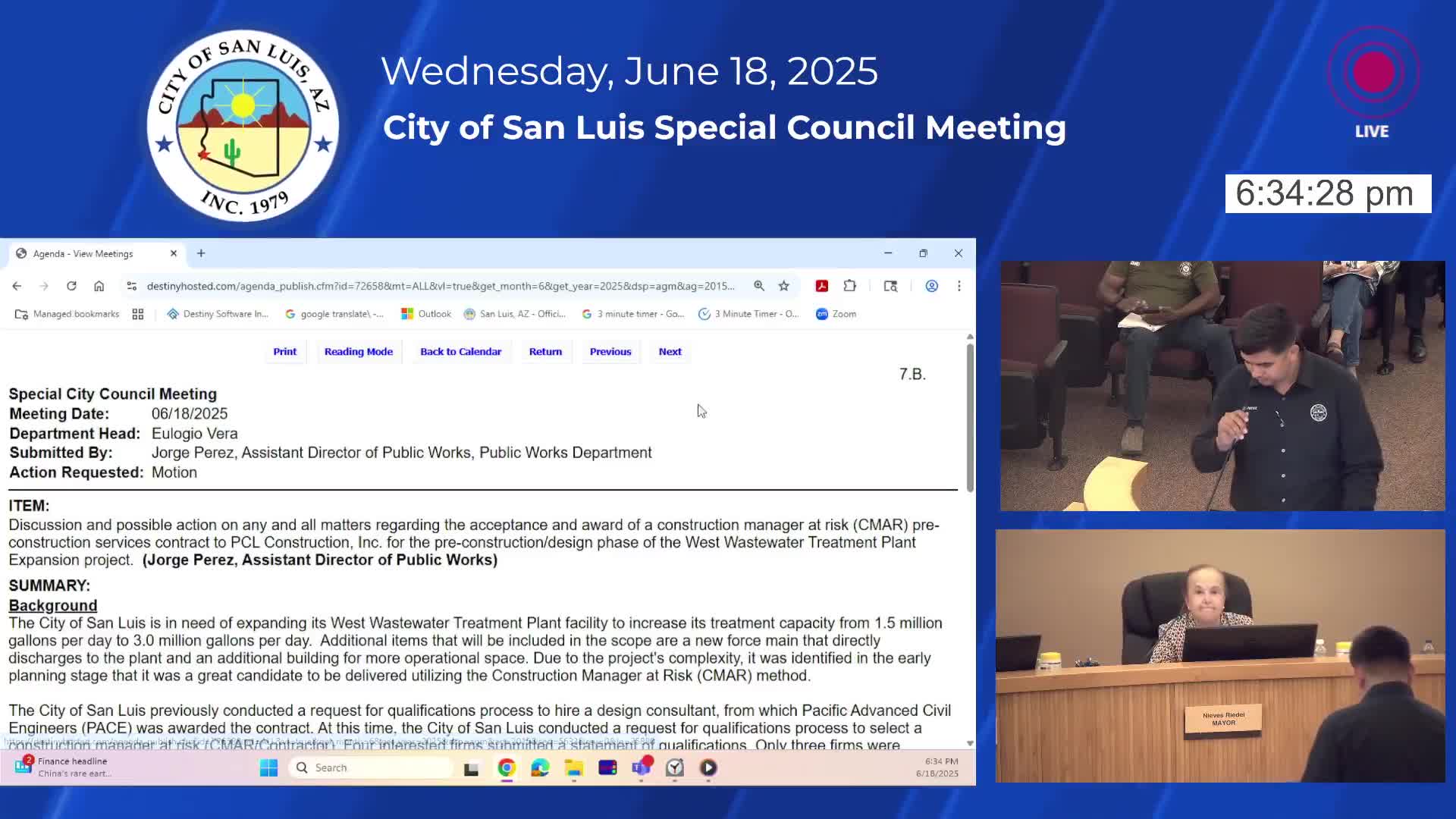 San Luis awards preconstruction contract for West wastewater plant, approves design change adding reuse pump