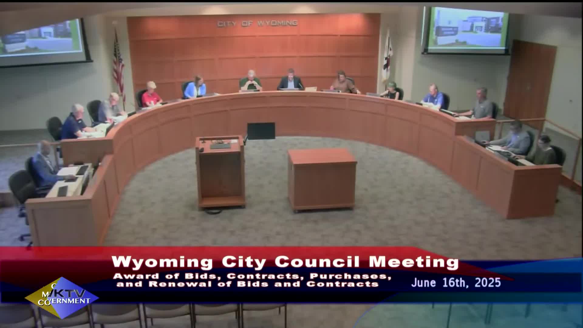 Wyoming council approves consent agenda: budget moves, grants, repairs, and multiple contracts