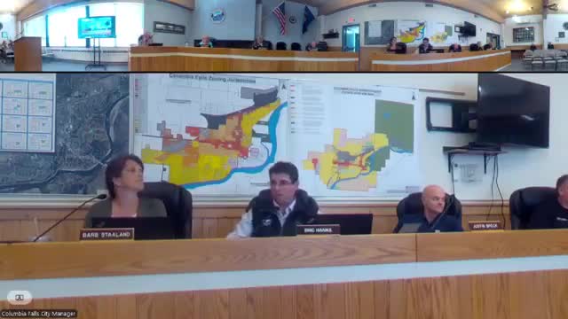 Columbia Falls council approves preliminary plat for five‑lot light‑industrial park with sidewalk, curb variances