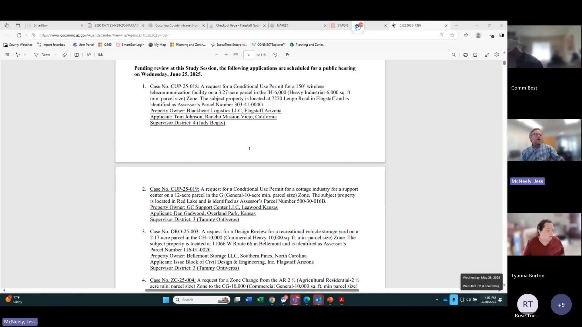 Planning and Zoning Commission votes (May 28, 2025): approvals for several CUPs, mixed outcome on Kachina rezoning