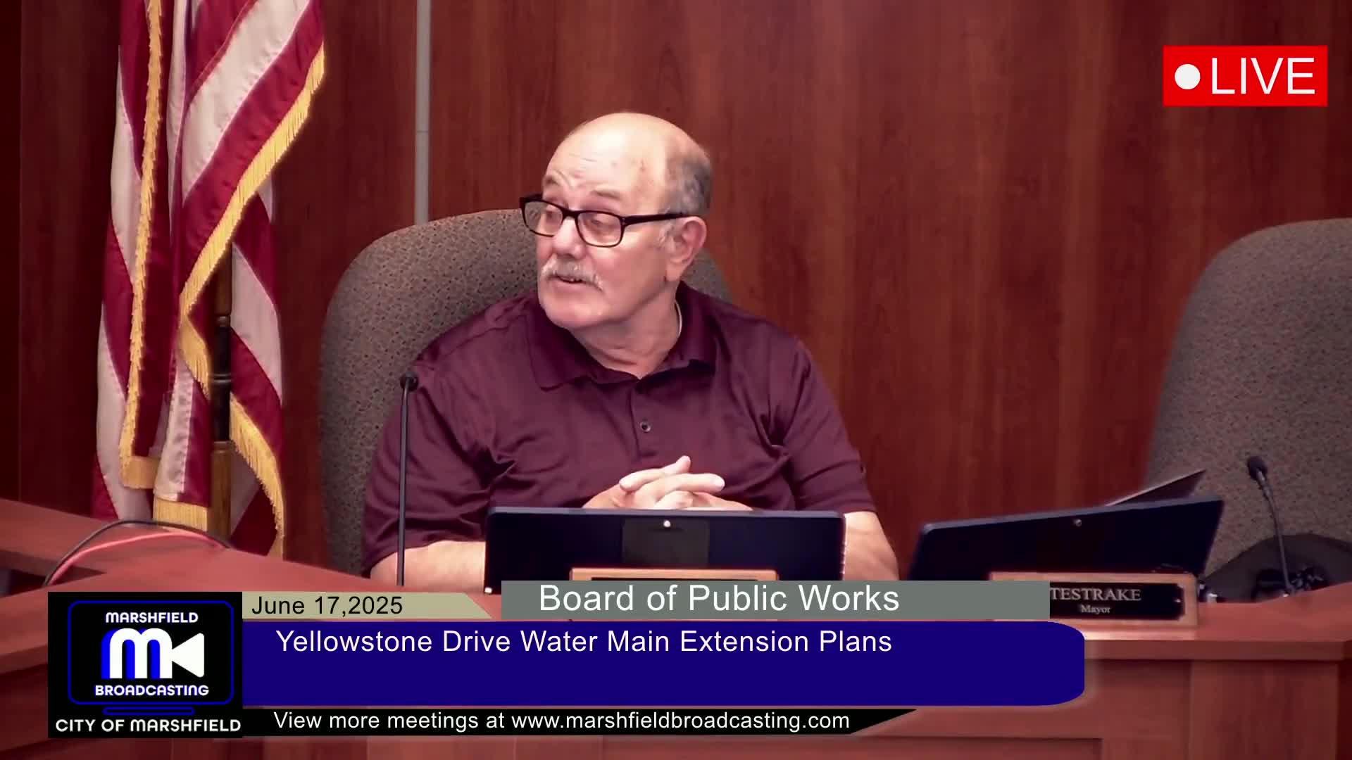 Board approves Yellowstone Drive water‑main plans, authorizes bid solicitation