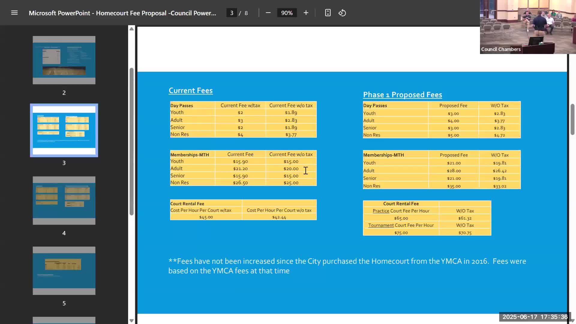 Meridian staff propose phased fee increases at HomeCourt to reduce subsidy; council favors larger, faster rise
