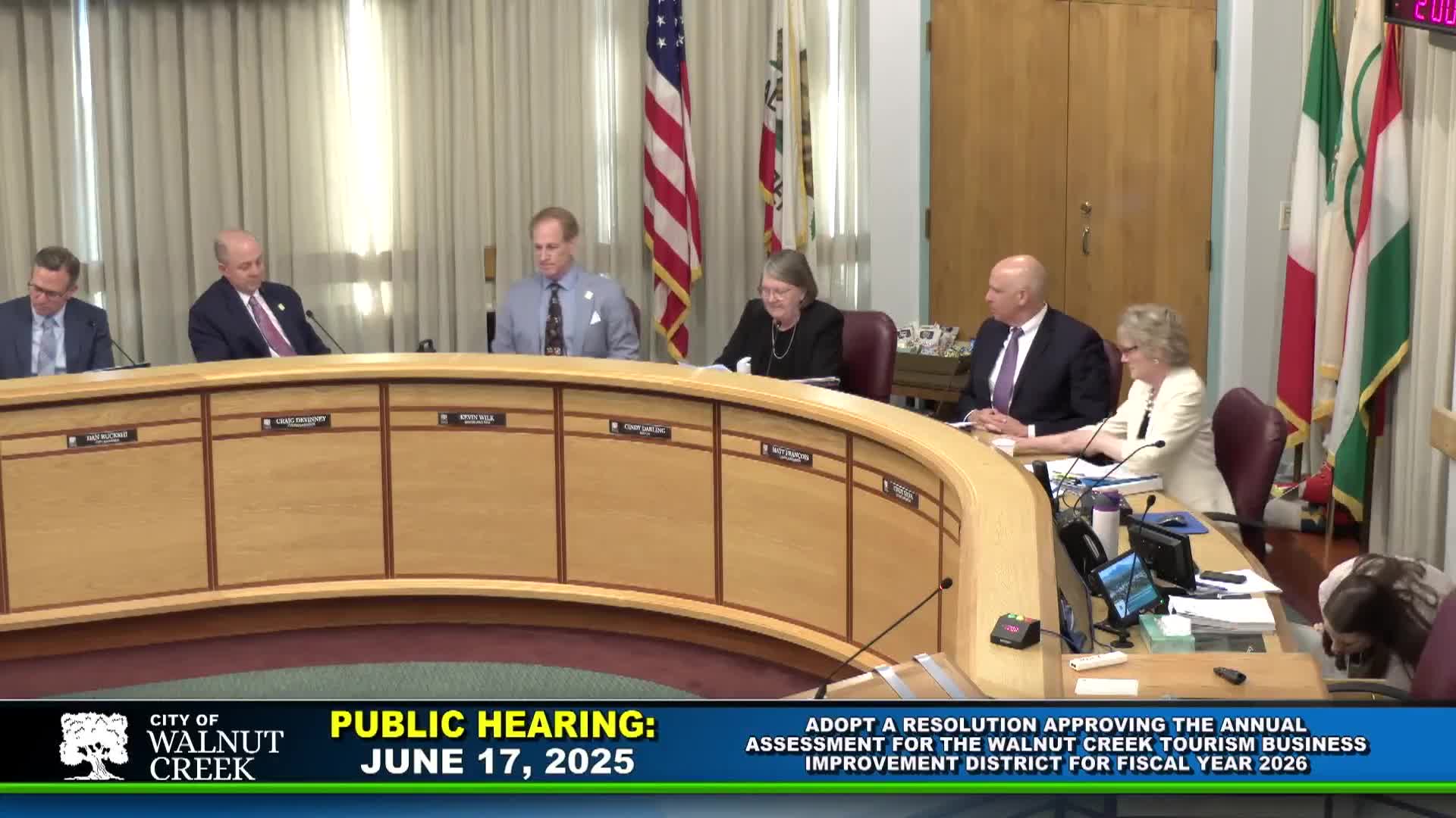 Council confirms 3% assessment for Walnut Creek Tourism Business Improvement District for FY26