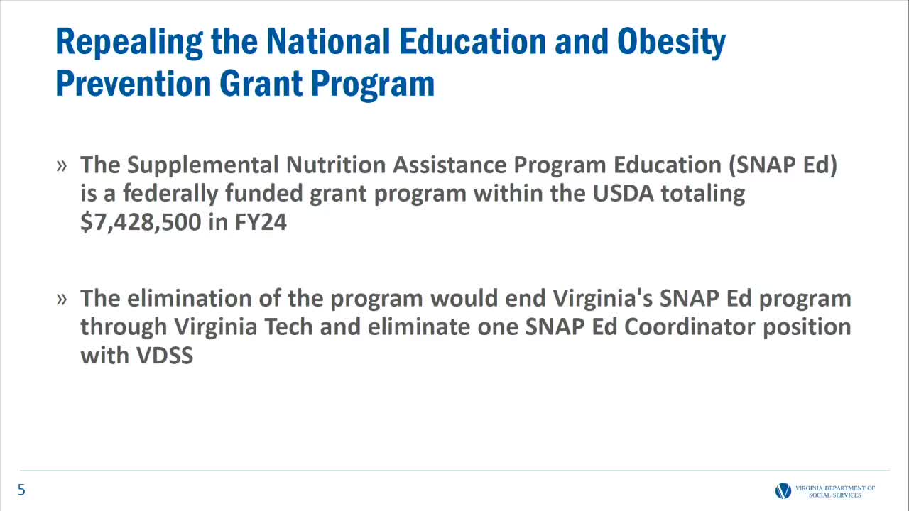 House and Senate SNAP proposals would raise Virginia costs and expand work rules, officials say