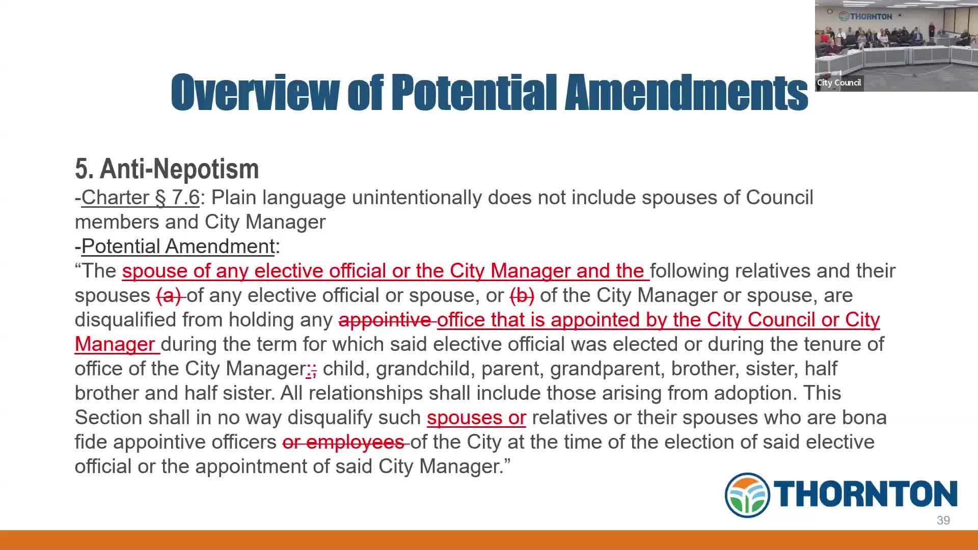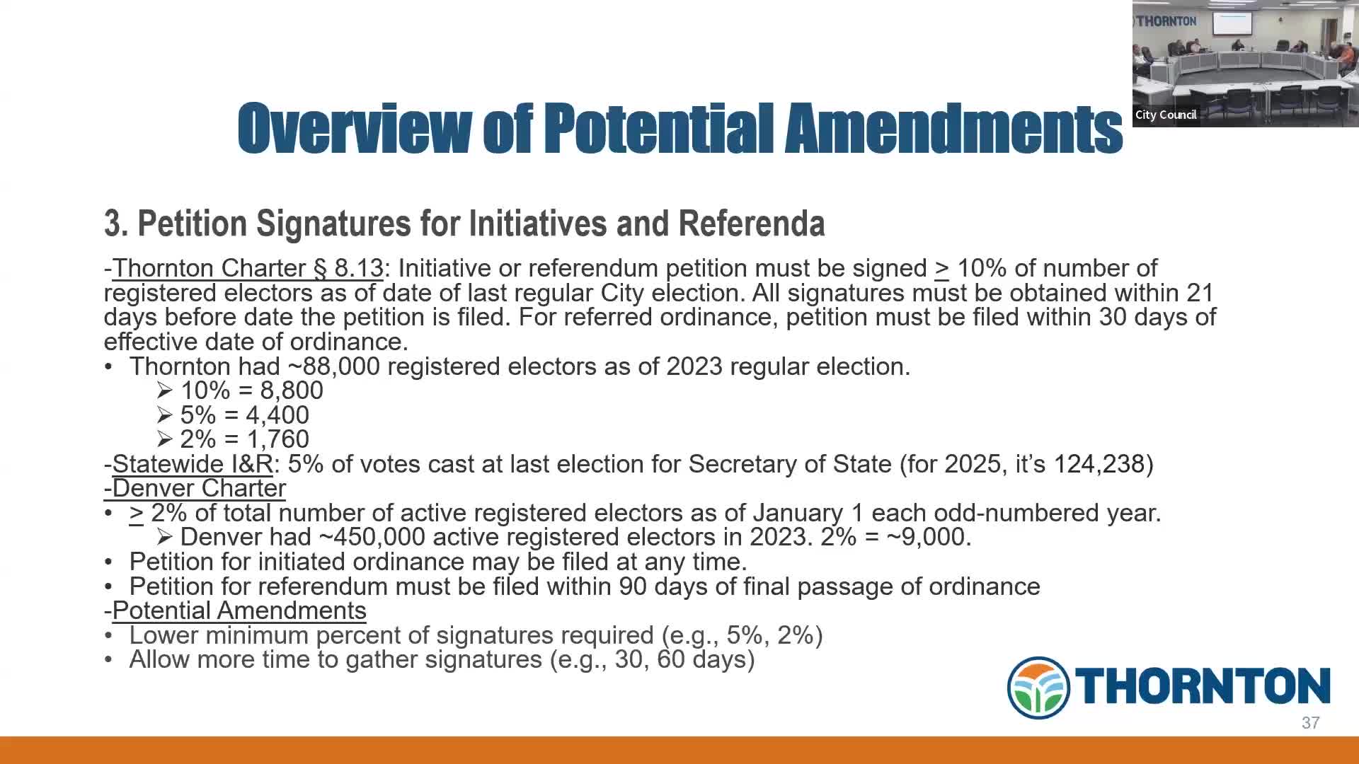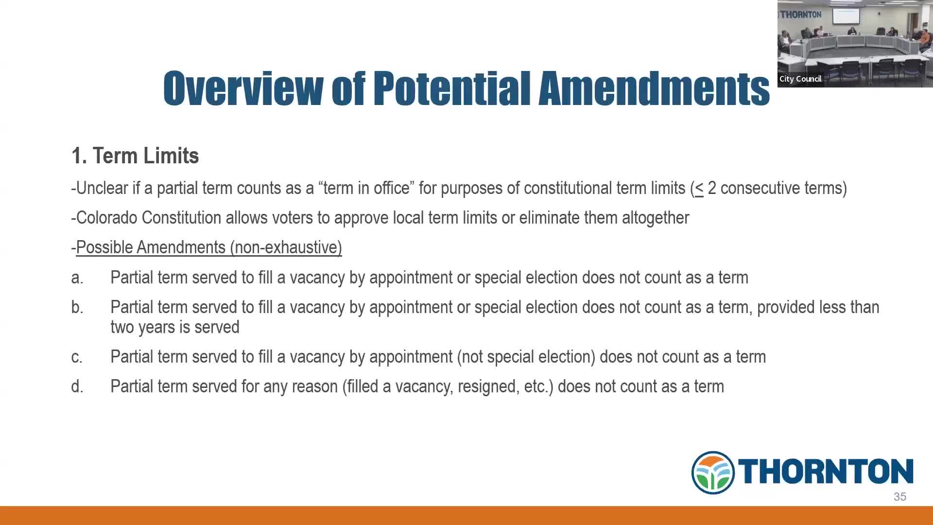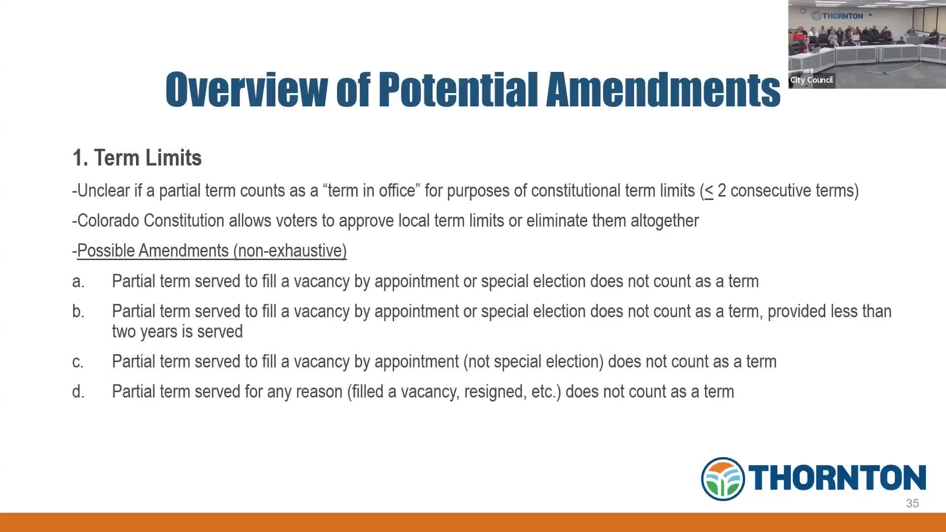 Thornton council reviews possible charter amendments on term limits, mayoral vacancies, initiatives and administrative delegations