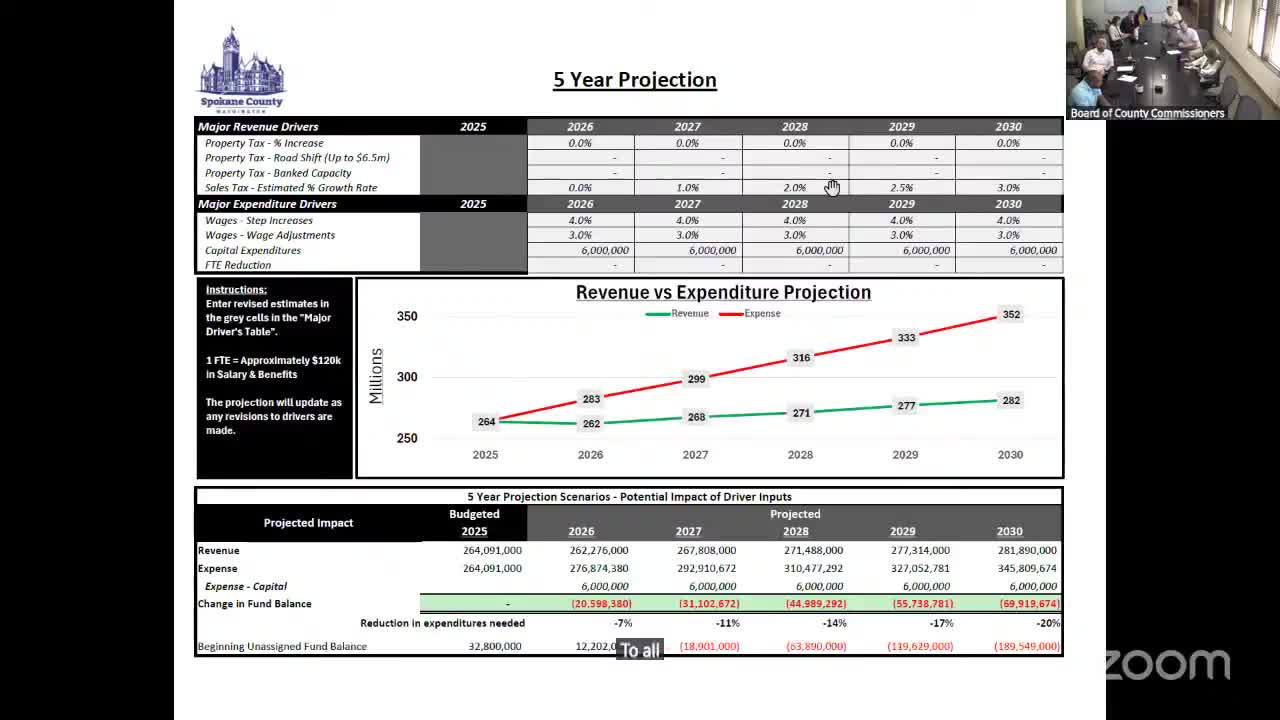 Spokane County tells department heads to meet board-set target budgets as officials work to close $20 million gap