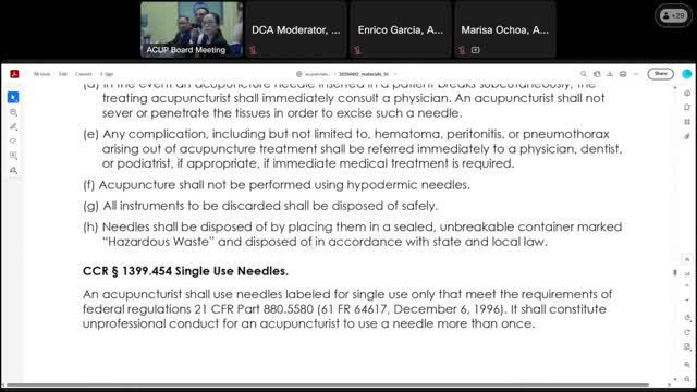 Board committee hears calls to update clean needle technique, single‑use rules and training