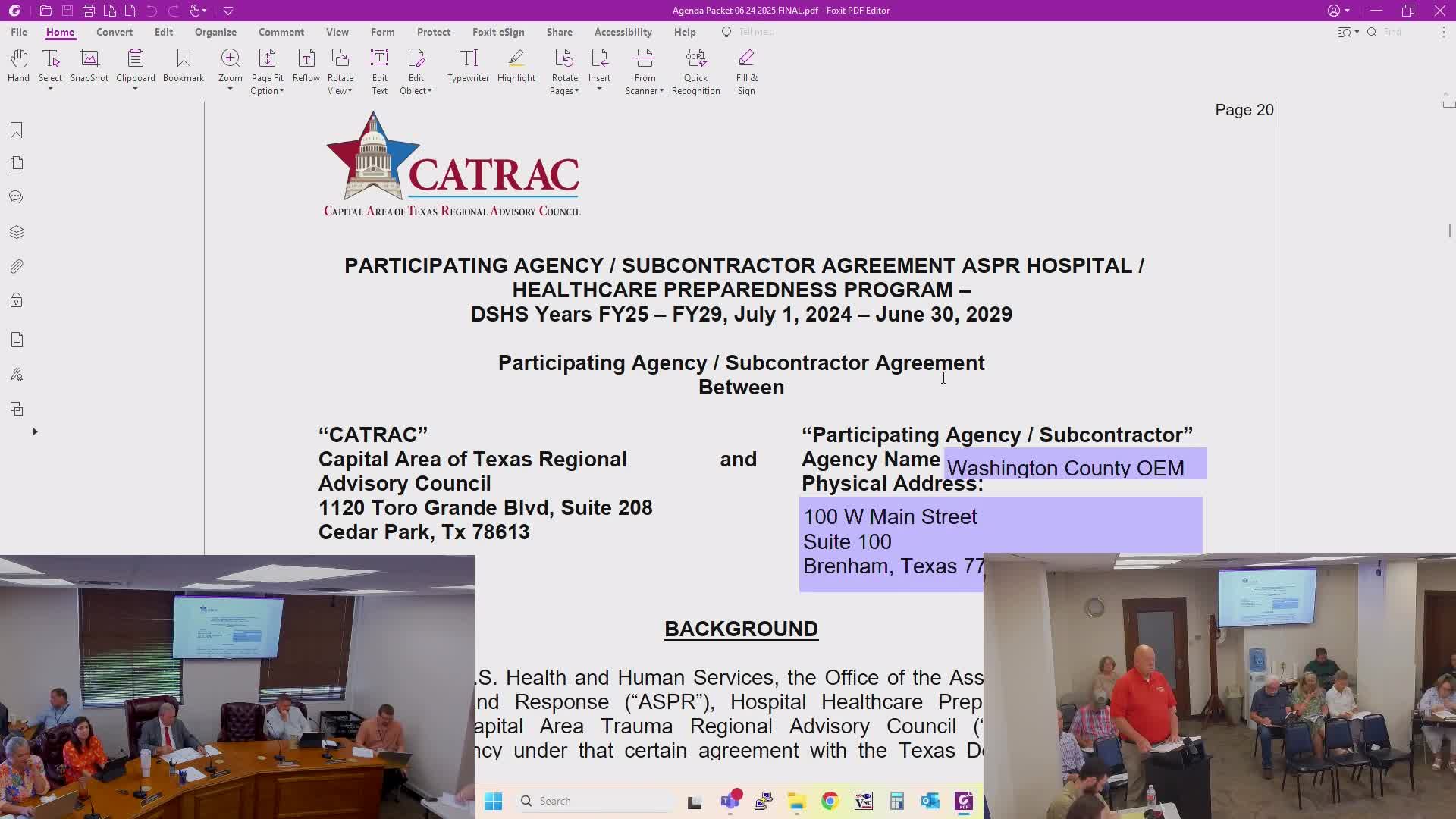 Court renews participating-agency agreement with Capital Area regional advisory council for emergency equipment